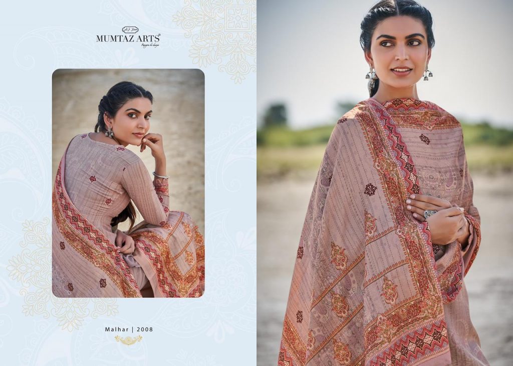 | DETAILS | Thank you for your support Today we *MUMTAZ ARTS™️ RANGON KI DUNIYA* are launching our all time exclusive series. _*MUMTAZ ARTS™️*_ Name – *MALHAR* Fabric details – *Bot* – Pure lawn dyed *Dup* – Pure LAWN DIGITAL PRINT Designs – 8 pcs |
