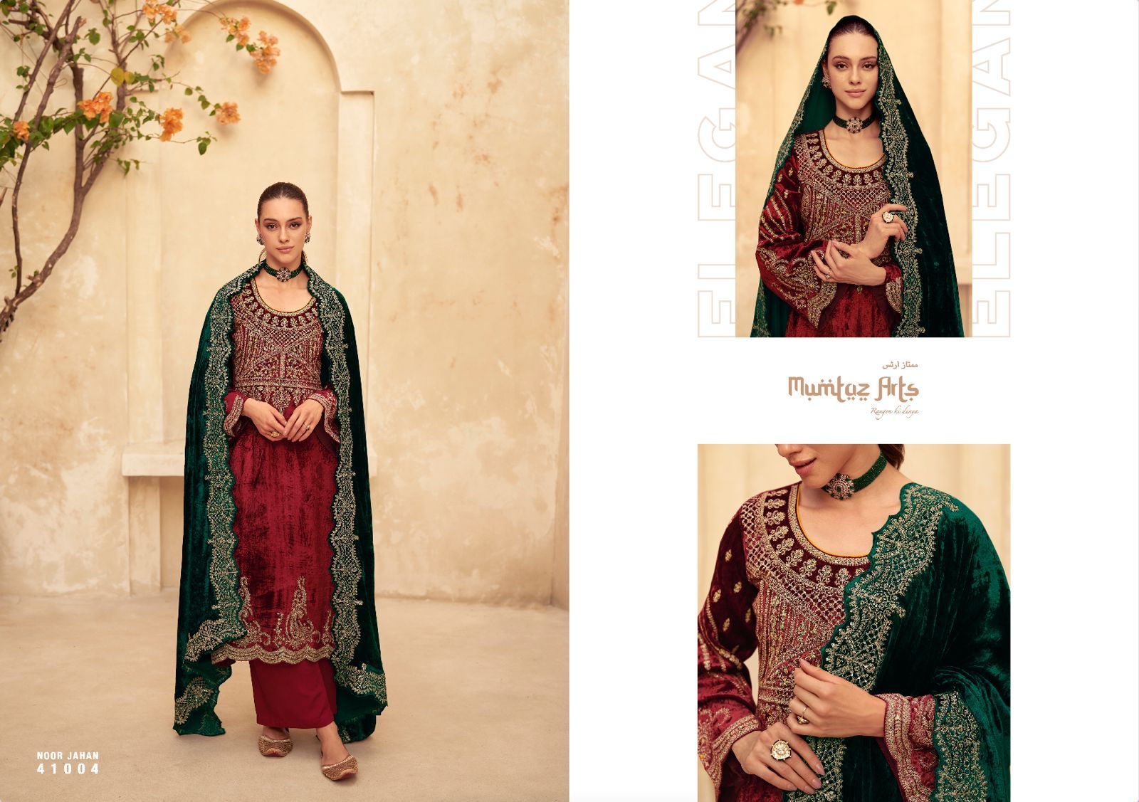| DETAILS | *FABRIC DETAILS :-*_TOP :- *PURE VISCOSE VELVET WITH HEAVY EMBROIDERY ON FULL SHIRT , SLEEVES & DAMAN WITH CUTWORK*DUPATTA :- *PURE VISCOSE PLUSH VELVET WITH HEAVY EMBROIDERY ON FULL DUP WITH CUTWORK*BOTTOM :- *PURE VISCOSE PASHMINA DYED SOLID*PCS:-*6* |
