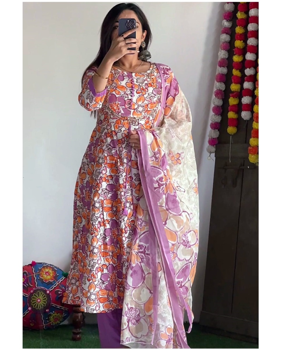 | FABRIC DETAILS | Featuring beautiful Suit Set which is beautifully decorated with intricate hand embroidery, It is paired with matching pants and dupatta.It comes with Digital FULL HAND WORK Shine Print and Embroidery workSHOWROOM BRAND COLLECTION QUALITY PIECE IN TRANDY DIGITAL PRINTS SIQUVANCE WORK DUPPTAFabric: Heavy ReyonIn Comes With Lining!!Inclusive: Top, Bottom & Dupatta[3 piece]Size - 3XL 4XL 5XL 6XL 7XL |