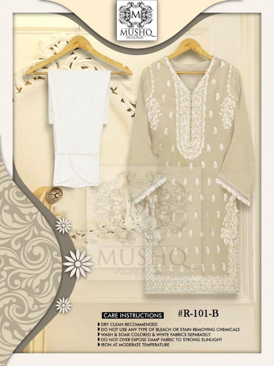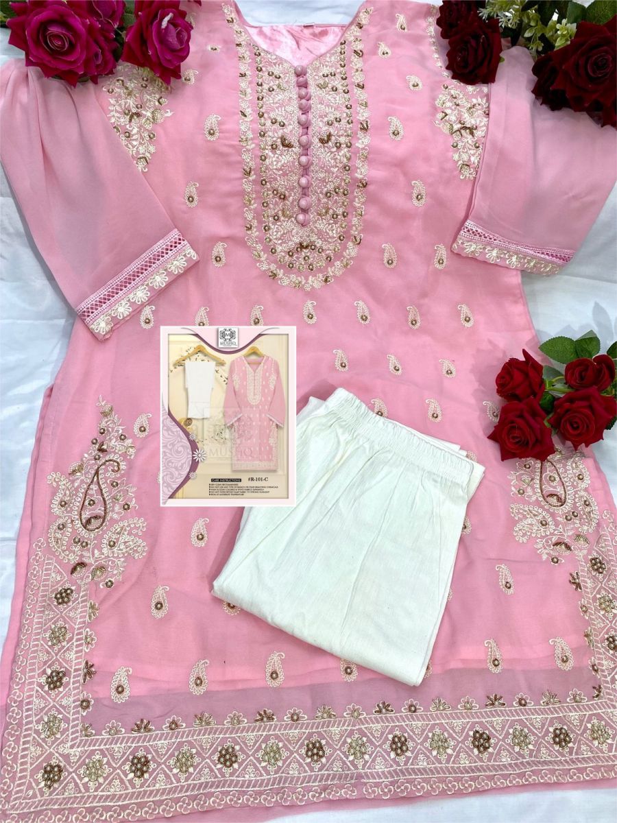 | DETAILS | *FABRIC** *Top*_ :- HEAVY FOX GEROGETTE EMBROIDERED Hendwrok khalti wrok Full stich*_INNER_*:- SANTOON_*Bottom*_ :- stretchable lycra*SIZE -XL *4 BEST COLOUR* |