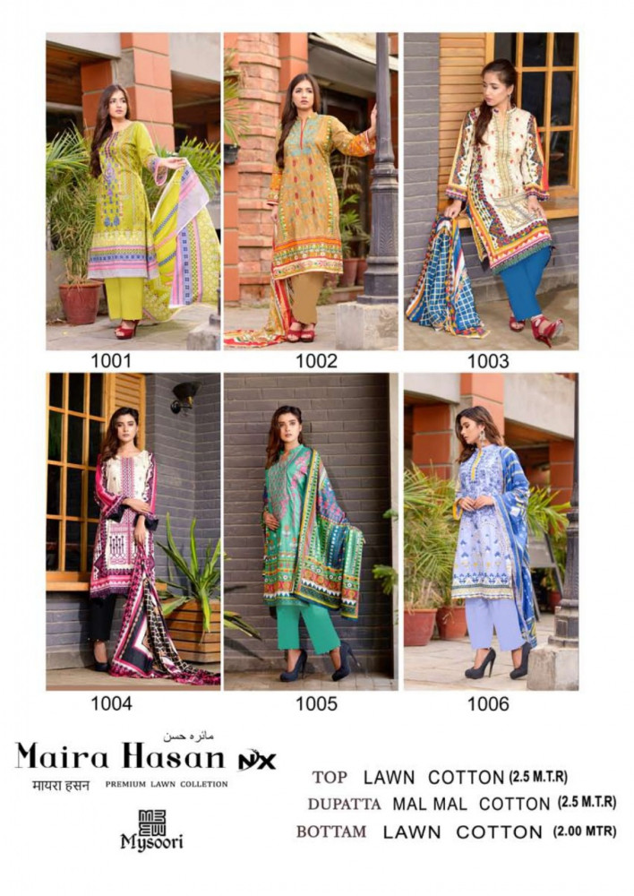 | DETAILS | MYSOORI MAIRA HASAN NX ?Top: Pure Lawn Cotton ?Dup : Pure Mal- Mal ?Bot : Pure Soft Cotton ?Pcs: 6 Pcs ?Selling Rate: 370/- |