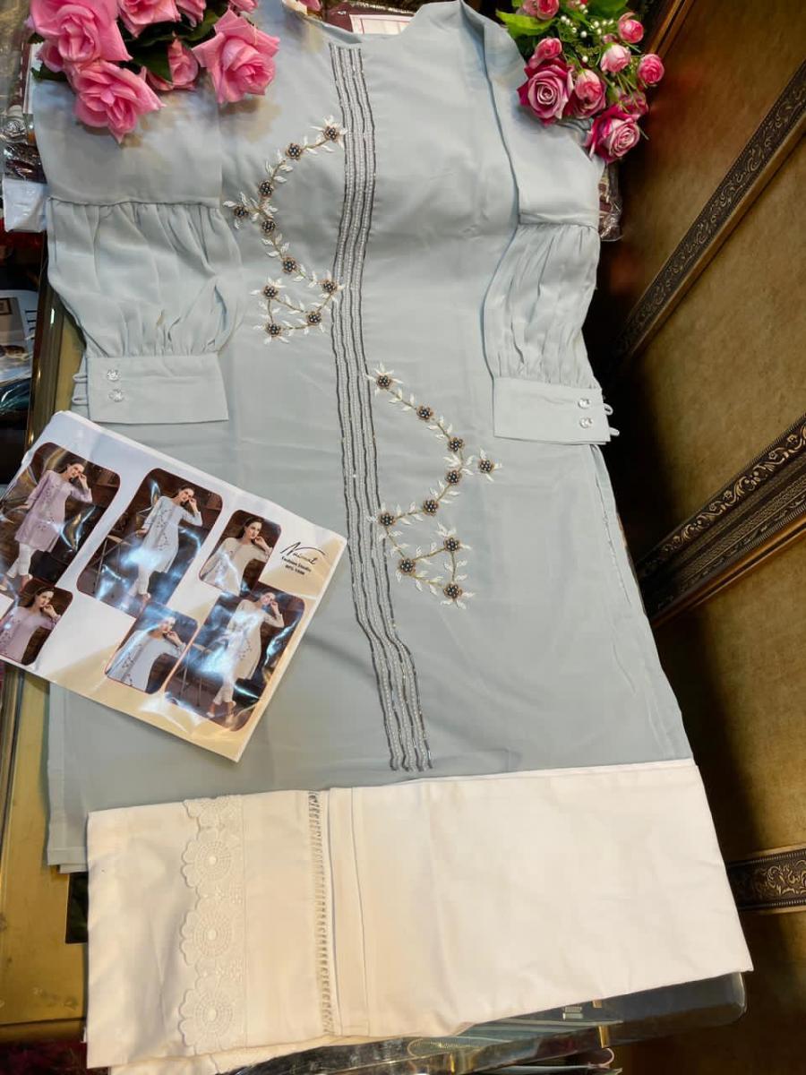 | DETAILS | *Details* *Top*:- Pure Georgette Fabric *Inner*:- santoon *Bottom* :- pure Cotton Satin Stretchable *Colour* (1) Frost Blue (2) Fern purple (3) Everon chiku (4) pestal pista Size Chart *Top XL size chest* (42) *Bottom XL size* (36-42) |
