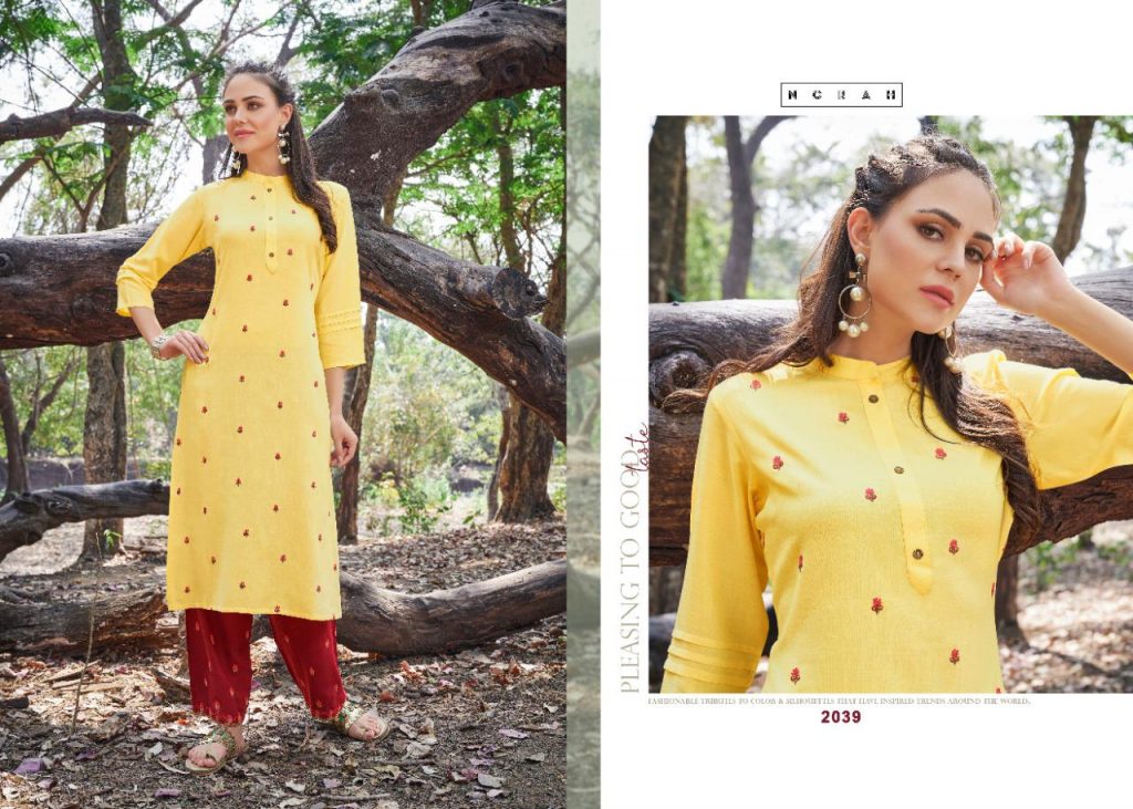 | DETAILS | *NEHA FASHION LAUNCHES OUR NEW CATALOUGE KURTI WITH PLAZO* CATALOGUE NAME- *NIRVI* ?FABRIC TOP – *RAYON SLUB with Embroidery Work* ?PLAZO- *RAYON SLUB with Embroidery Work* SIZE – *L(40), XL(42), 2XL(44), 3XL(46)* |