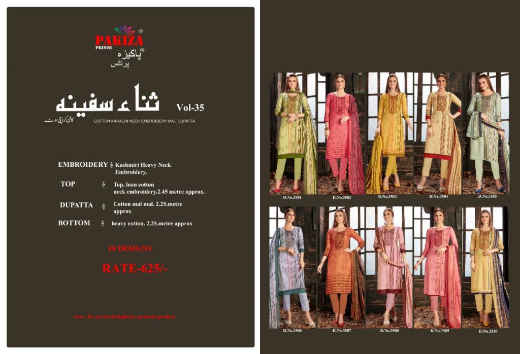 | DETAILS | PAKIZA PRINT VOL 35 NOTE:- LAWN COTTON MATERIAL 10 DESIGNS |