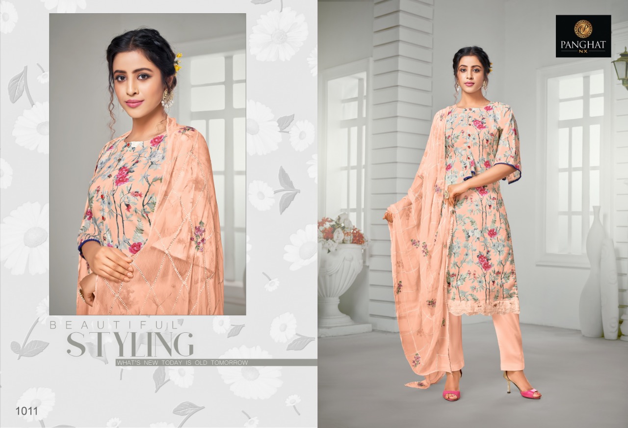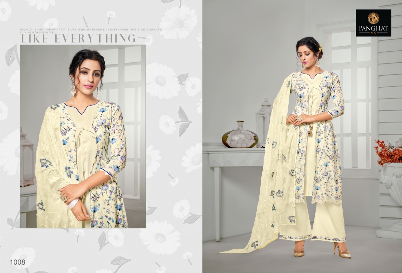 | DETAILS | #Pure Jam Cottan DIGITAL ?? *PANGHAT Nx* ?? _ _presents__ *”NAZAKAT ”* ?Top: *100% Pure jam cottan DESIGNER DIGITAL PRINT with Fancy laces * ?Siffon Dupatta: *siffon Duppta with stilish wrok* ?Bottom: 100% *pure cottan FABRICS * ?Pcs: 7psc ?Rate: 755/- (GST extra) |