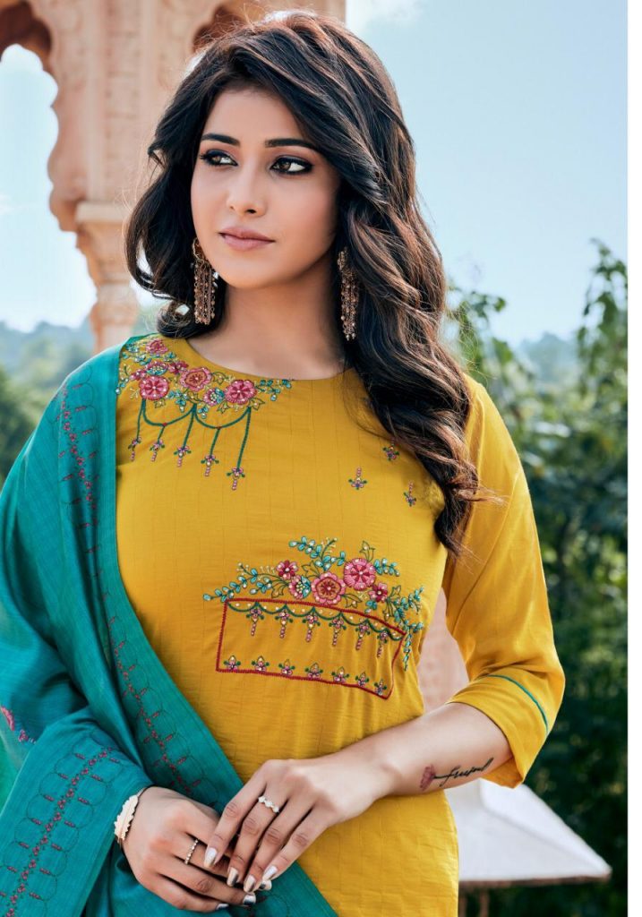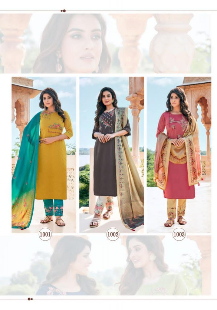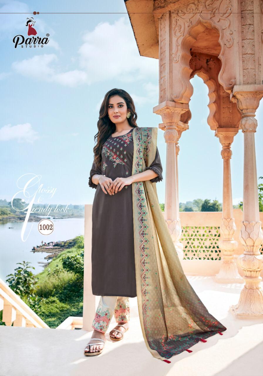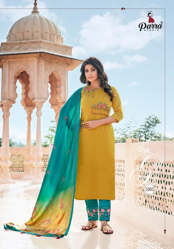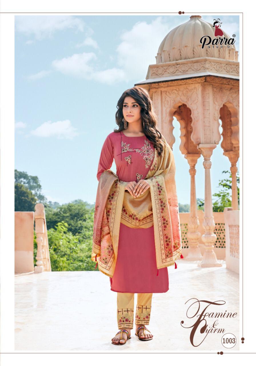 | DETAILS | PARRA STUDIO* *Upcoming Catalogue* *Kurti With Pent and Dupatta * *Mahisha * Kurti ~ chinon fabric with Pent ~jaam cotton with pocket Dupatta ~ silk dupatta digital print Size- M (38) Length- 46” Rate = 999 |