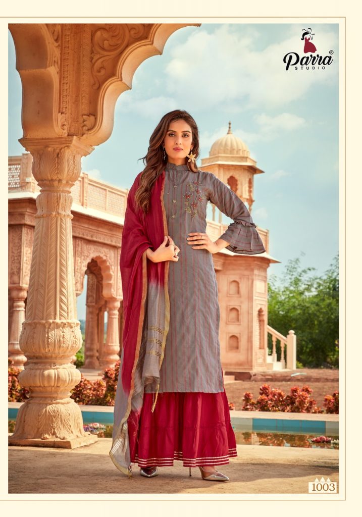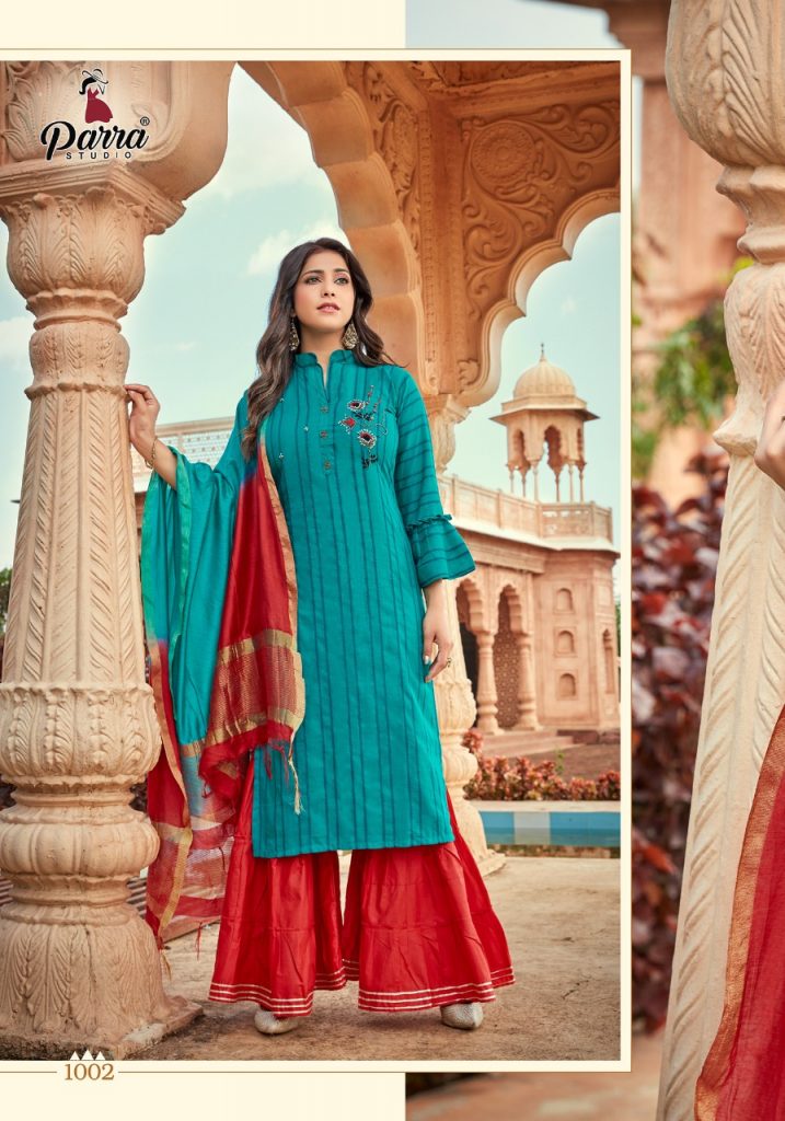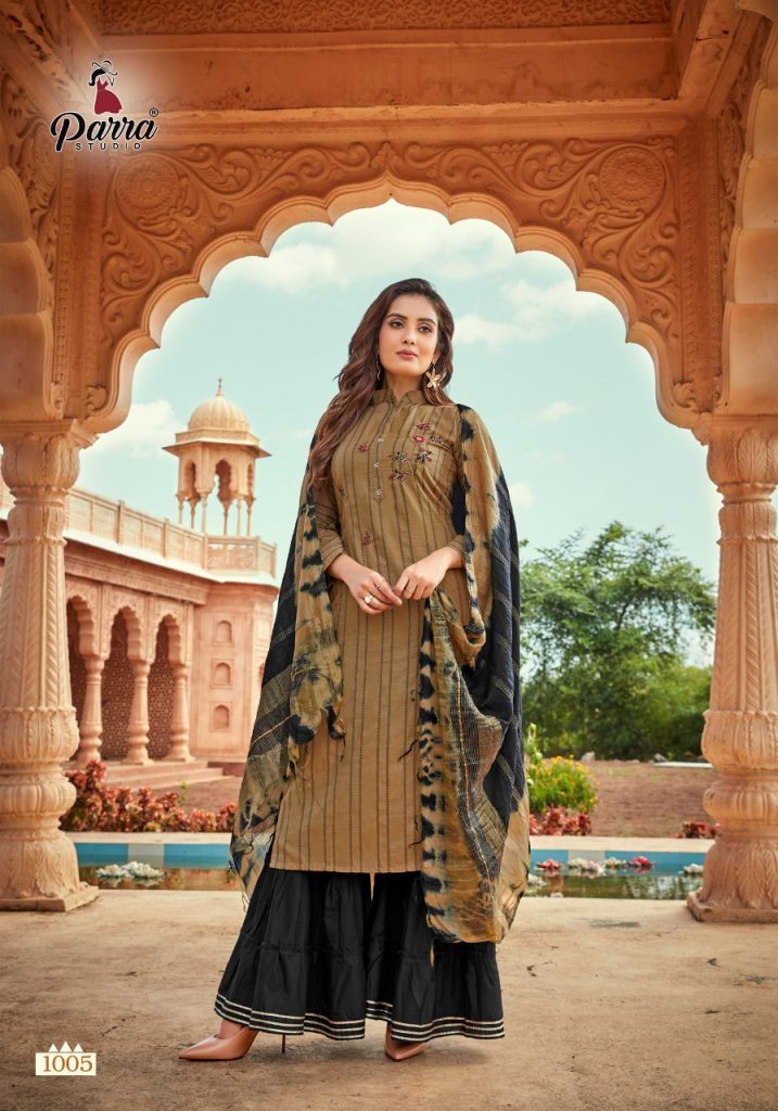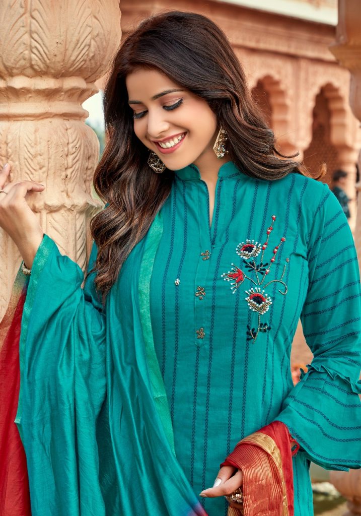 | DETAILS | *FABRICS* TOP. :- *SOUTH COTTON STRIP WITH KHATLI WORK* SARARA. :- *COTTAN MAL WITH GOTA PATI* DUPATTA :- *SILK JARI BORDER* ?Size – *M (38)* Lenght – *46*” |
