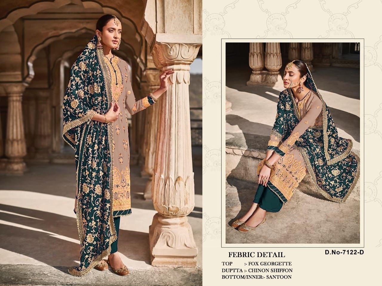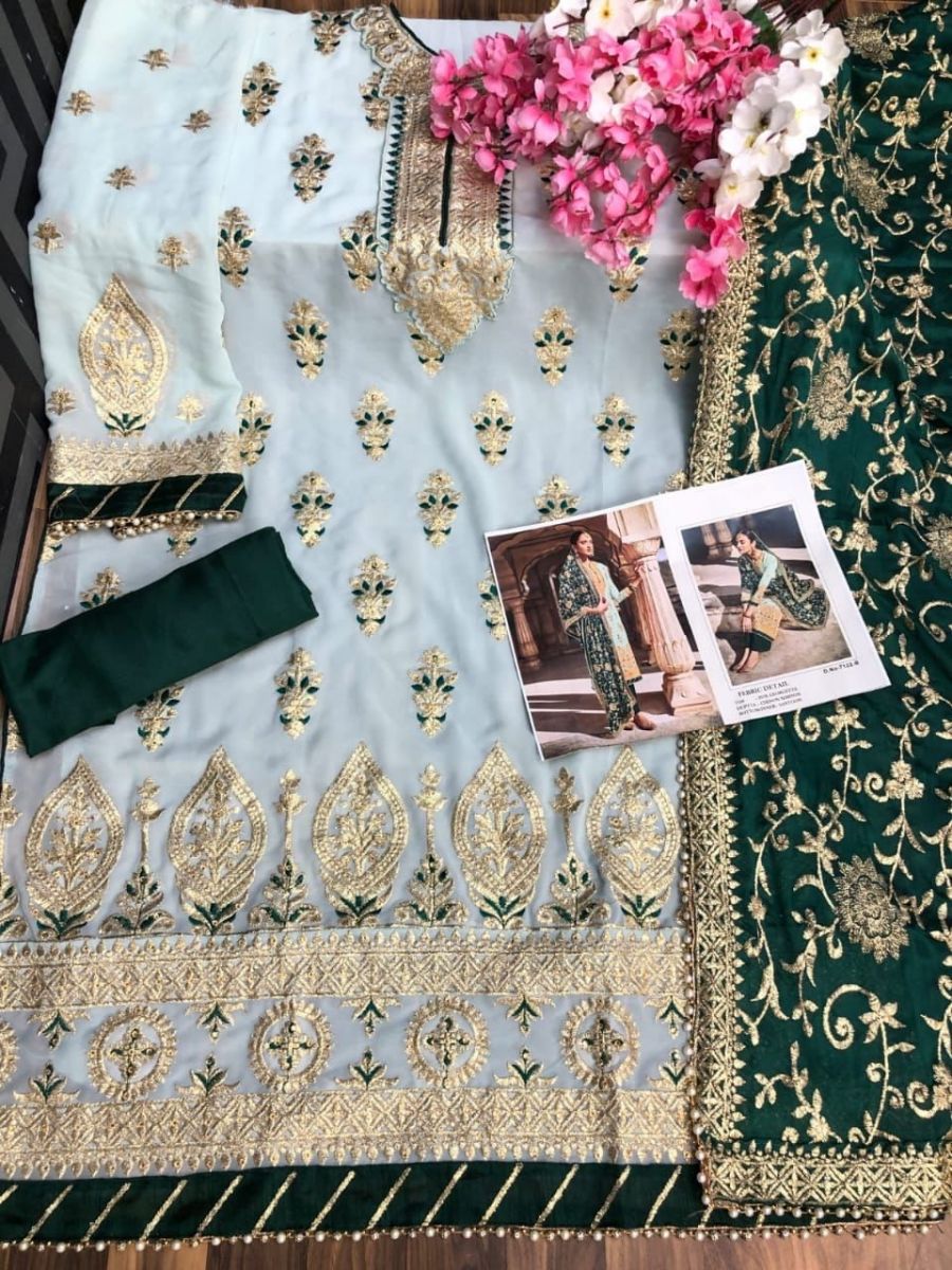 | DETAILS | *--: Fabric Details :--**Top* :- Heavy Fox Georgette With Embroidery Work With Stone*Bottom* :- Santoon*Inner* :- Santoon*Dupatta*:- Chinon Shiffon With Heavy Embroidery Work With 4 Side Less |