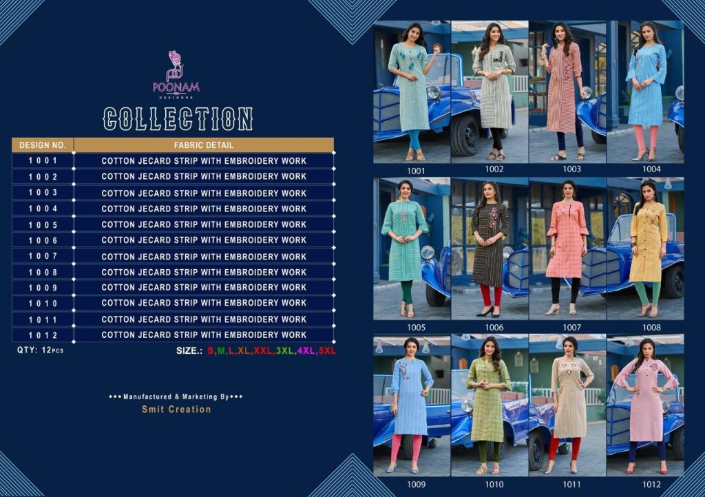 | DETAILS | *Poonam Designer®️*?? “ *COLLECTION*“ kurti? – Cotton Jecard strip Size ₹ 399/- Dispach – Tuesday Note ? *All size same rate* |