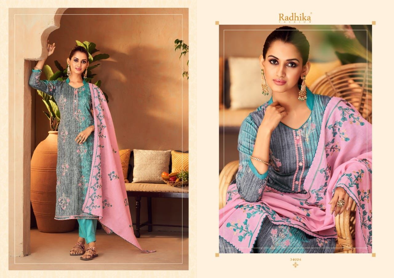 | DETAILS | ***Fabric Details:* *Top: Blossom cotton print with foil and nek & Fancy lace work Dupatta: cotton full embroidery & four side laceBottom: cotton Pcs: 8 |