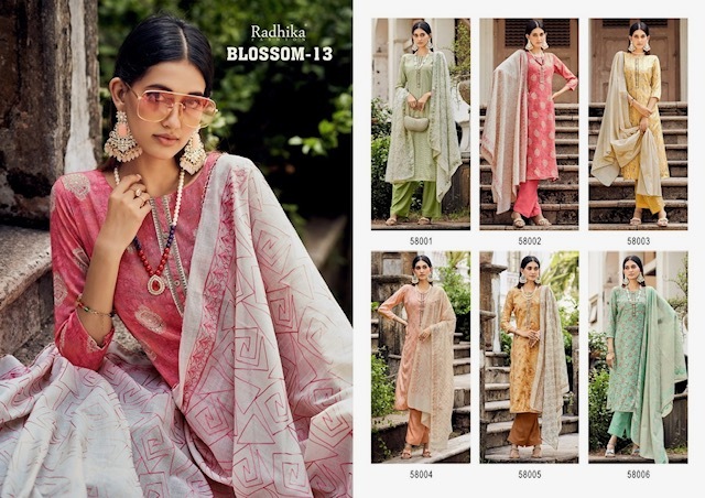 | DETAILS | ***Fabric Details:* *Top: Blossom cotton print with foil and nek & lace work Dupatta: cotton full embroidery & four side laceBottom: cotton Pcs: 6** |