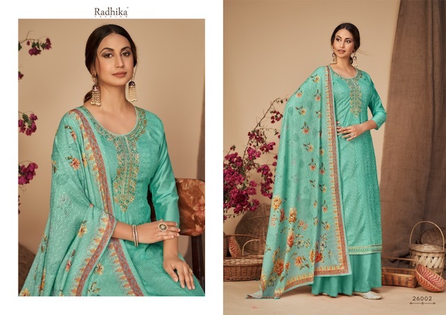 | DETAILS | **Fabric Details* *Top: pure viscose modal chanderi cross-stitch with self embroidery neck & lace work Dupatta: muslin cross-stitch work digital print Bottom: cotton Pcs: 4** |