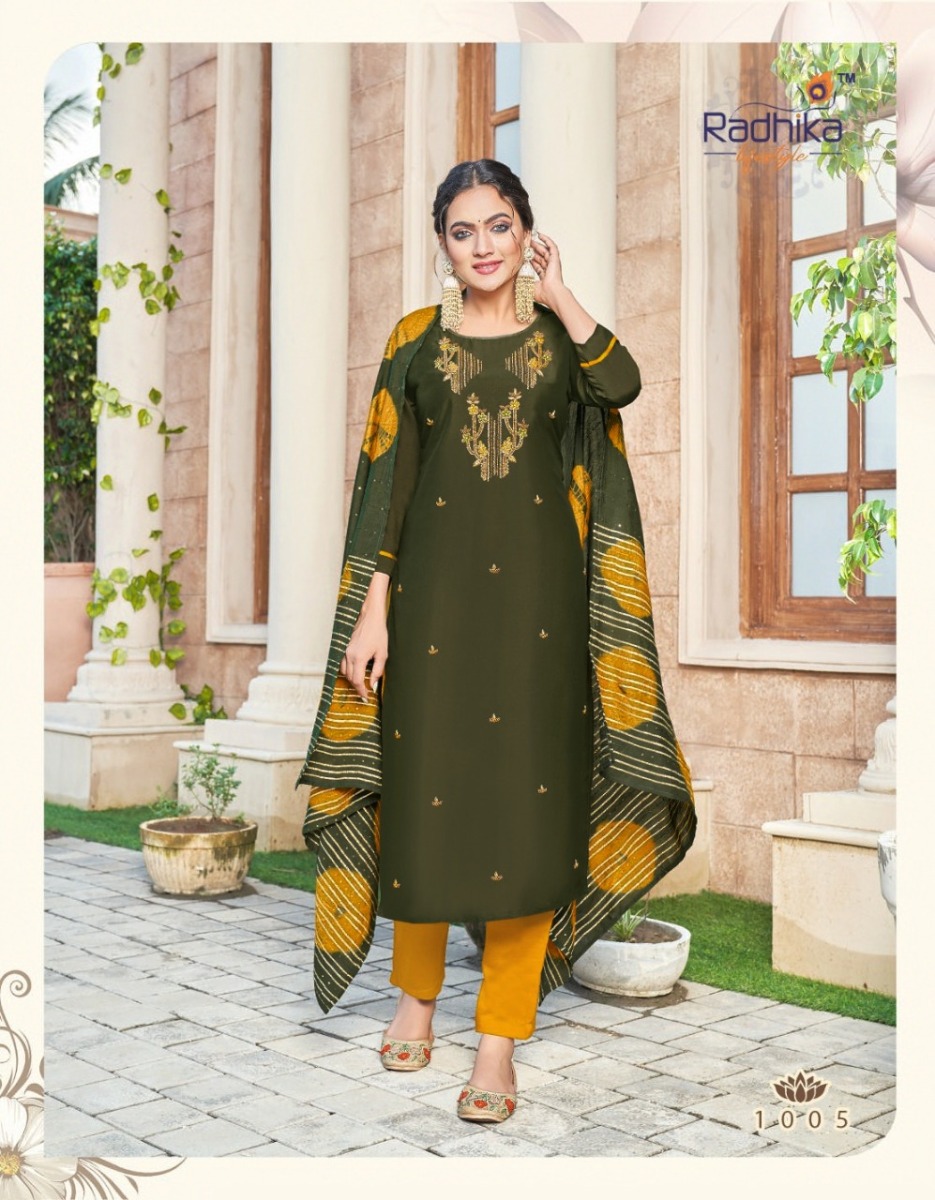| DETAILS | *Details *TOP BOTTOM DUPPATA*TOP FABRICS : Chinon silk with Khat work ( with inner )BOTTOM FABRIC : chinon silkDUPPTTA : Chanderi with sequence workSize - *M(19) L(20) XL(21) XXL(22) 3xl(23)* Length --> *46*Designs- *6 pcs* |
