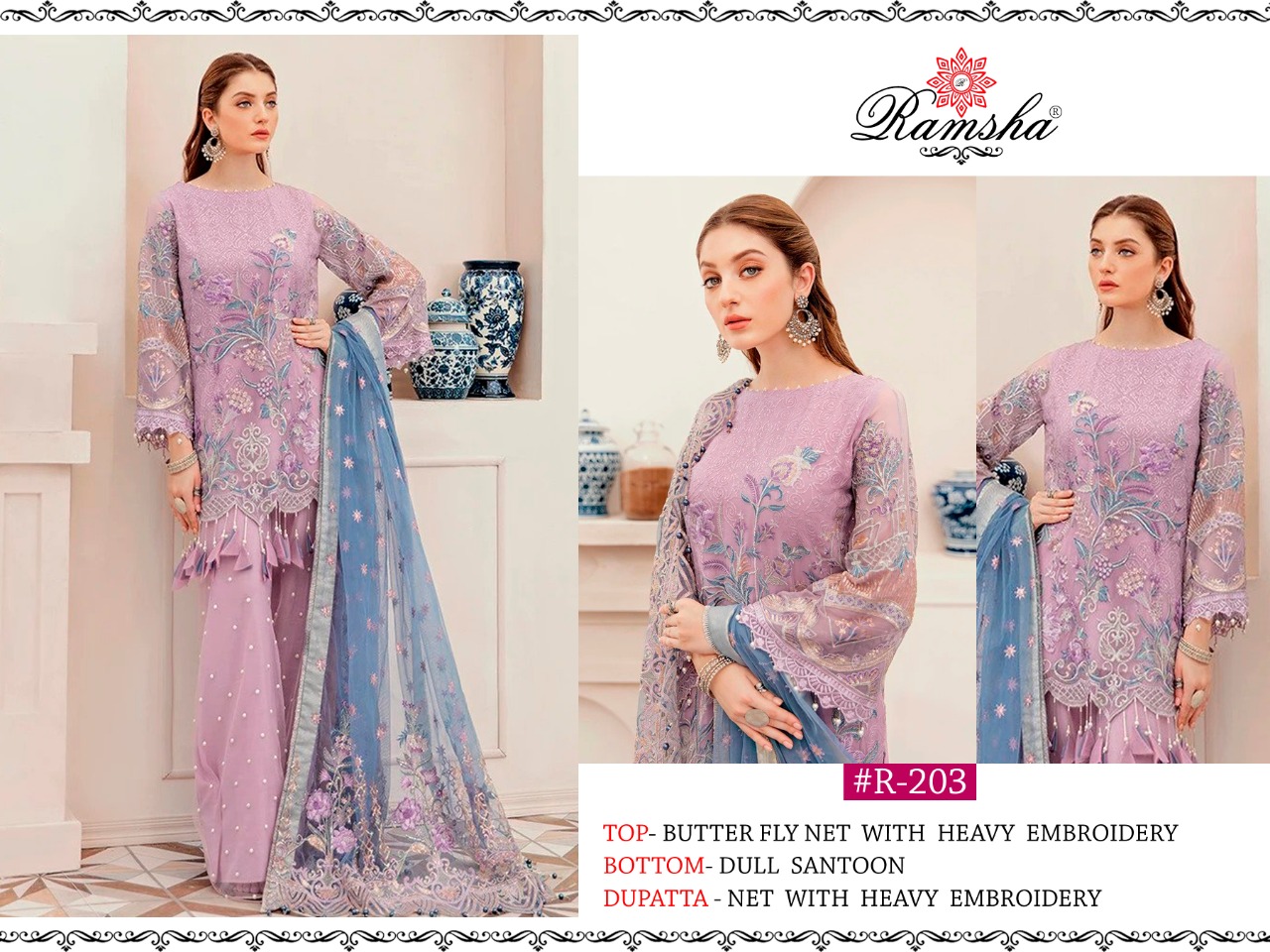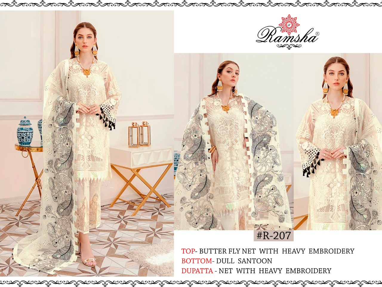 | DETAILS | *RAMSHA..PRESENT* *?#R-203 #R-204 #R-205 #R-206 #R-207 ?* RATE – *1251₹*+GST FABRICS DETAIL:- |
