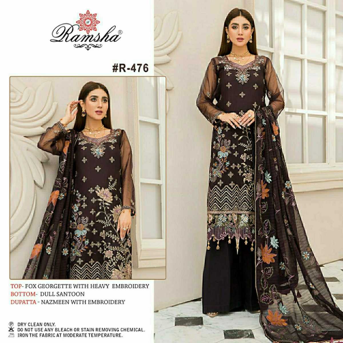 | DETAILS | *FABRICS DETAIL:- TOP:- *GEORGET WITH EMBROIDERY* BOTTOM:- *DULL SANTOON* DUPPTA:- *NAZMEEN EMBROIDERED* |