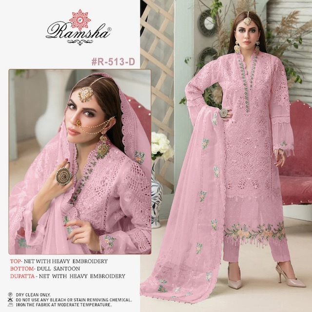 RAMSHA PRESENT R 513 NX NET EMBROIDERY PAKISTANI SUITS WHOLESALE