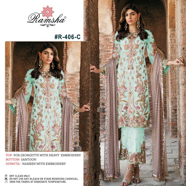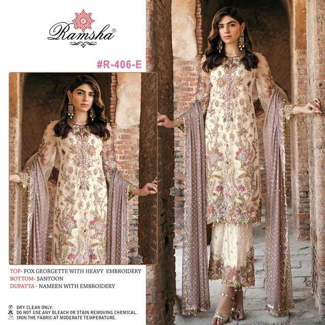 | DETAILS | *RAMSHA..PRESENT** #R-406 nx*RATE :- *1051₹*+GSTFABRICS DETAIL:- TOP:- *GEORGET WITH EMBROIDERY* BOTTOM:- *DULL SANTOON* DUPPTA:- *NAZMEEN EMBROIDERED* |