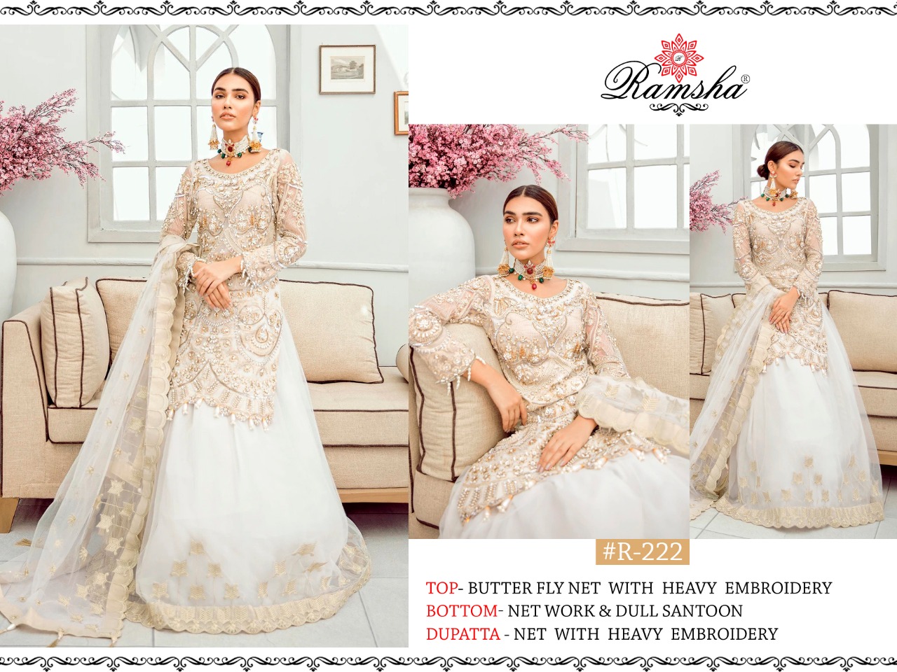| DETAILS | *RAMSHA..PRESENT* *?#R-221 #R-222 #R -223 ?* RATE – *1351₹*+GST FABRICS DETAIL:- *SINGLE MULTYPLE AVAILABLE* *? आपका विश्वास हमारी पहचान ?* |