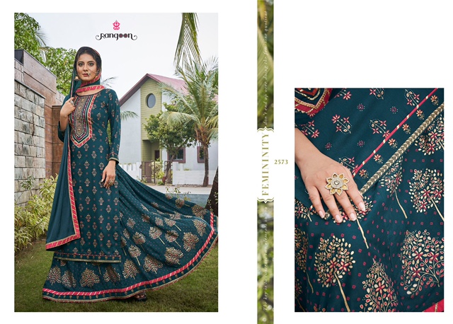| DETAILS | Top:- Heavy Rayon Print with Work Bottom:- Heavy Rayon Print with Work Dupatta: Chinon with Four Side Border |