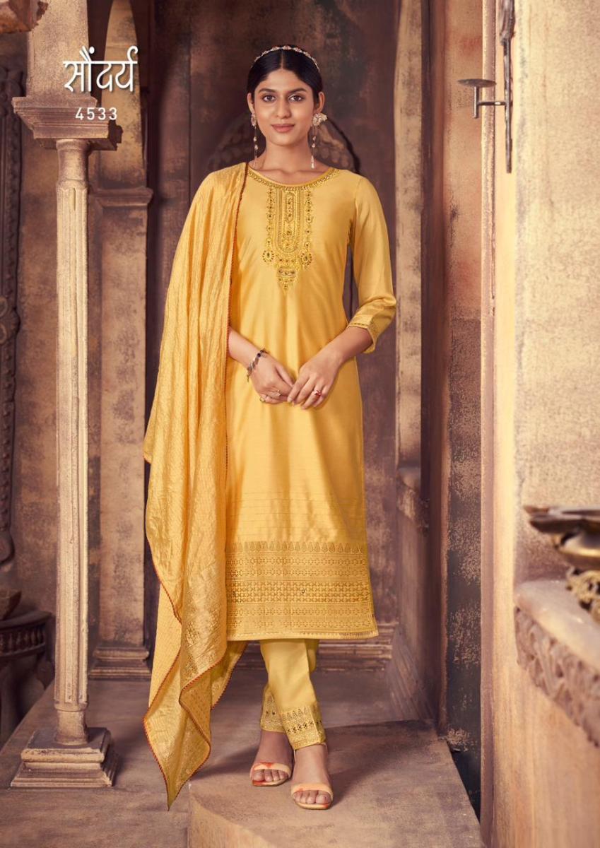 | DETAILS | ***Fabric Details* Top:- Viscose Jecaurd Embroidery Work Nack With Khatli Handwork and Inner Bottom:- Viscose With Embroidery work Pant Dupatta:- Viscose Jari Jecaurd With Fourside BorderTotal Design:- 06Size:- M, L, XL, XXL, 3XL ** |