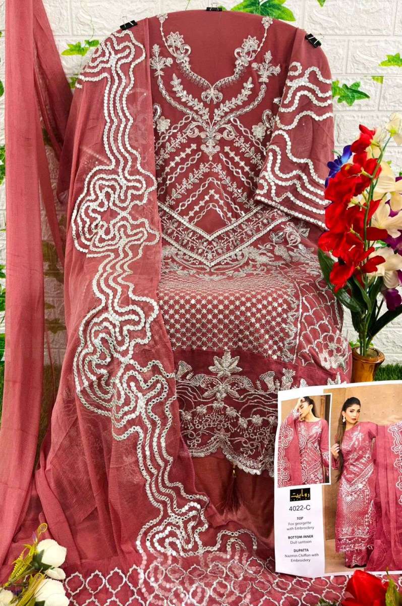 | DETAILS | ***FABRIC DETAILS:-**Top:-faux georjott with embroidery * INNER/BOTTOM :-dull santoon Dupatta:Nazmin chiffon with emb** |
