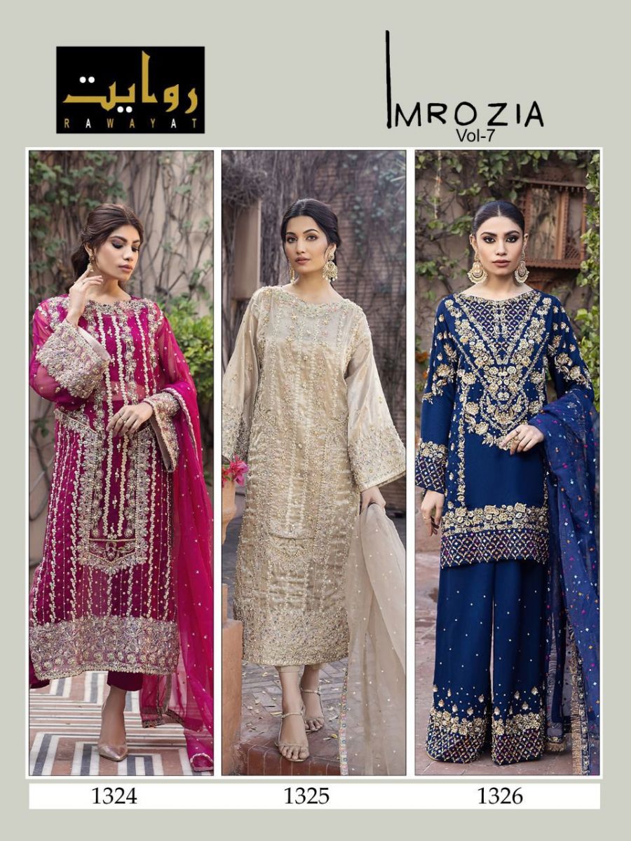 | DETAILS | *Fabric Faux Georgette Top Faux Georgette With Exclusive EmbroideryWork | 2.50 Mtrs Bottom + Inner Dull Santoon | 2.50 Mtrs Dupatta Nazmin Chiffon With Embroidery | 2.25 Mtrs Shipping Depending on Quantity |