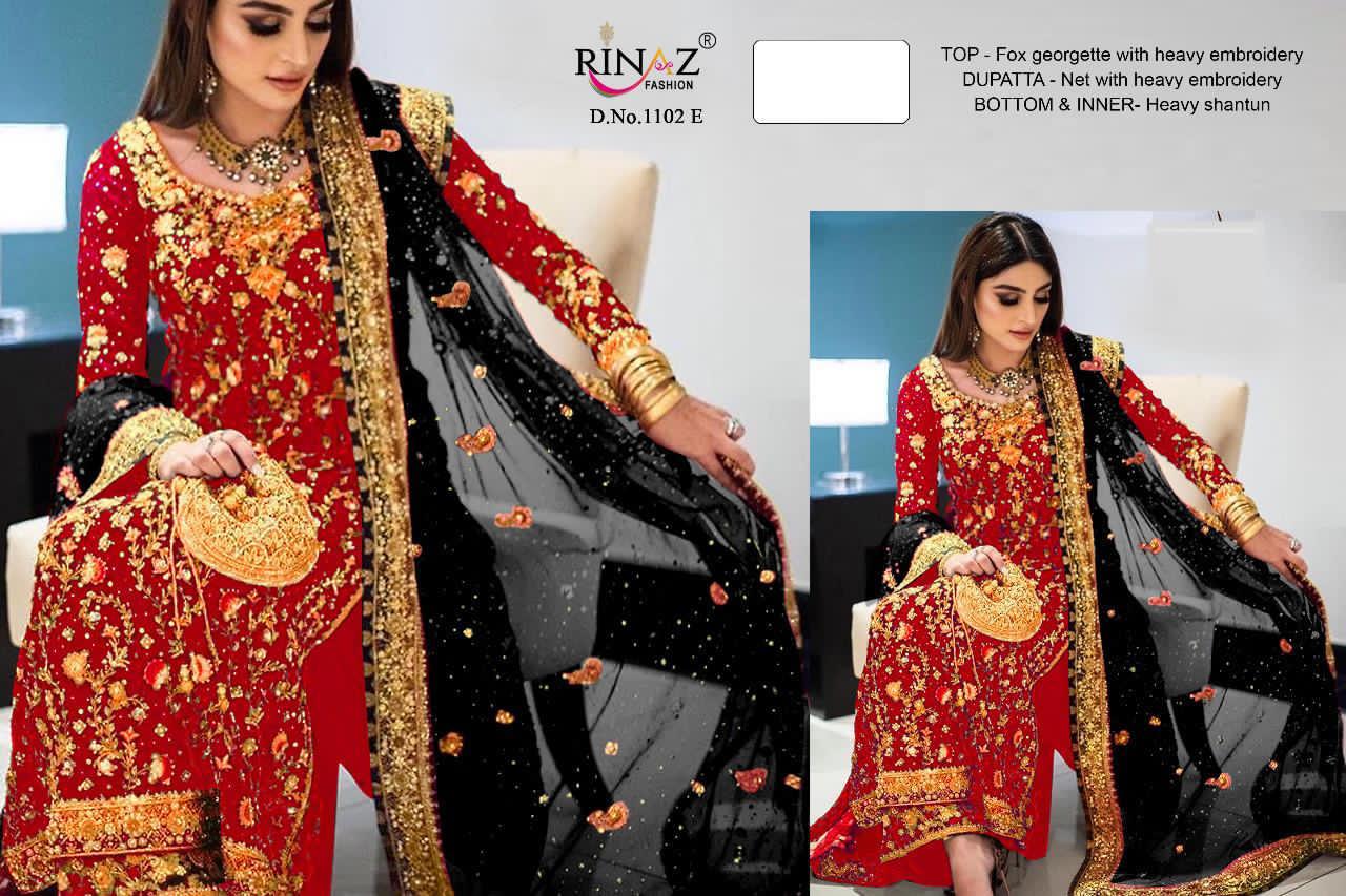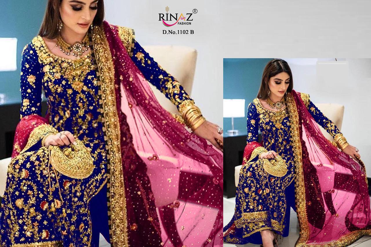 | DETAILS | * RINAZ FASHION 1102 COLORS* *FABRICS TOP* ?:- FOUX GEORGETTE & HEAVY NET WITH SELF EMBROIDERY WORK *INNER*. HEQVY DULL SANTUN *DUPPTTA* NAZNIK CHIFFON/ NET WITH EMBROIDERY WORK |