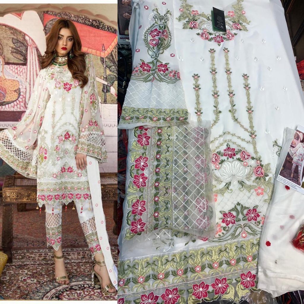 | DETAILS | ABRICS TOP* ?:- FOUX GEORGETTE & HEAVY NET WITH SELF EMBROIDERY WORK *INNER*. HEQVY DULL SANTUN *DUPPTTA* NAZNIK CHIFFON/ NET WITH EMBROIDERY WORK |