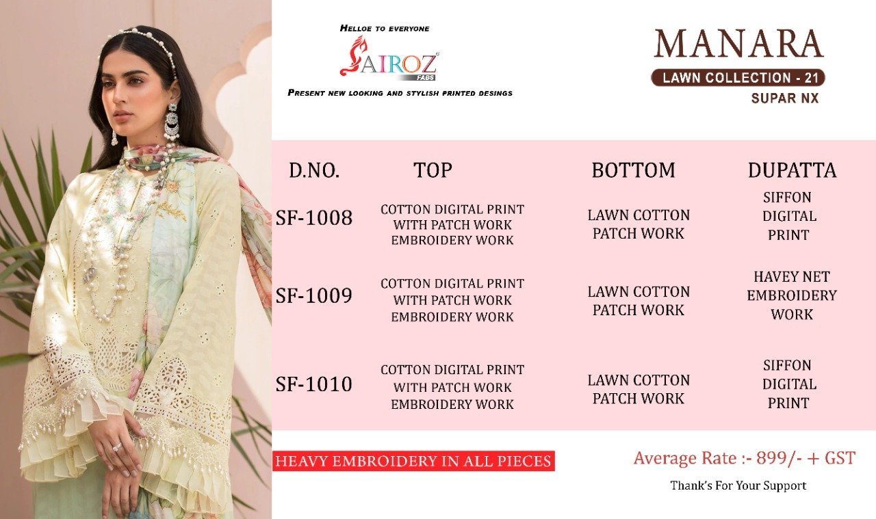 SAIROZ FABS MANARA LAWN COLLECTION 21 SUPAR NX PAKISTANI SUITS WHOLESALER