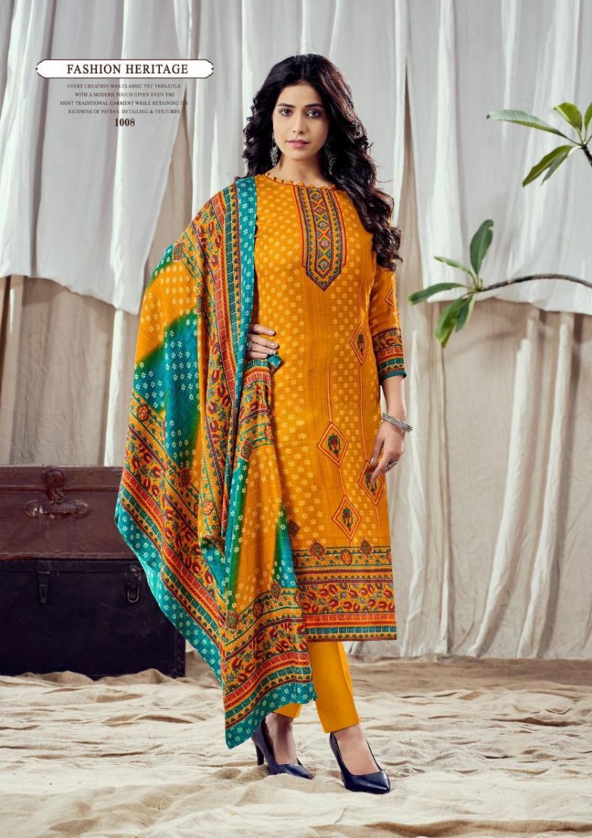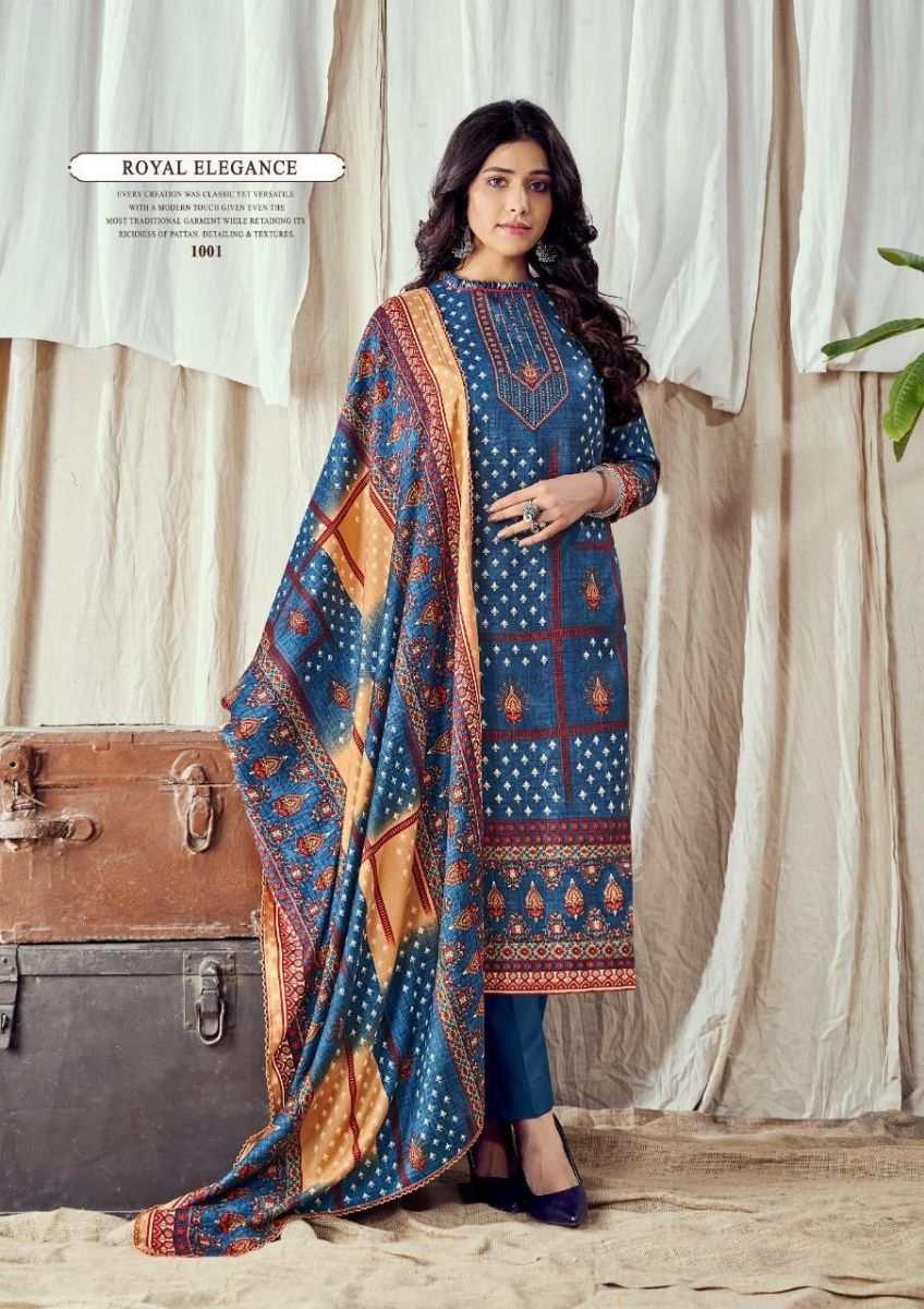 | DETAILS | Fabric Details:-**TOP :- *Pasmina jaquard* *cut:-2.50 mtr**BOT:- *Heavy pashmina spun bottom * *Bottom cut-3:00 mts approx **Dupatta:- TWILL PASHMINA SHAWL *PRINTED 2:25 cut * |