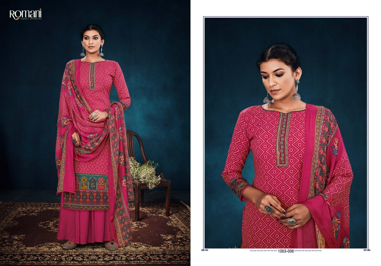 | DETAILS | TOP :- *Pasmina (HEAVY SPUN)Print with SIROSKY DIMOND WORK* *cut:-2.50 mtr app**BOT:- *Heavy spun bottom * *Bottom cut-2:60 mts perfect**Dupatta:- TWILL SHAWL *PRINTED 2:25 cut * |