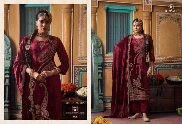 | DETAILS | **FABRIC DETAILS:- TOP:- PURE VISCOSE VELVET WITH EMBROIDERY KODING FANCY WORK… DARK VELVET CUT PASTE PATCHES WORKS HEAVY BOTTOM:- PURE VISCOSE PASHMINA DUPATTA:- PURE VISCOSE VELVET+ VELVET EMBROIDERY STICH 4 SIDE KODING EMBROIDERY WORK…. |