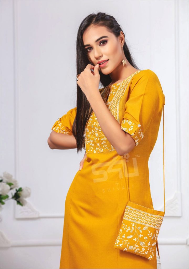| DETAILS | Experience the soft touch by wearing these super comfy Kurtis with matching bags from S4u by Shivali. No of designs – 7 Size – L, XL, 2XL Size – 3XL, 4XL |