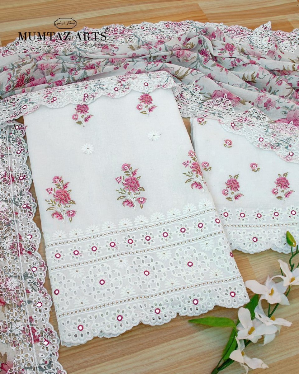| DETAILS | *Top:* PURE ZAM DESINER PRINT WITH HEAVY KHATLI KNOT HAND WORK *Bottom:* ZAM DYED *Dupatta:* PURE BAMBERG PRINTED |