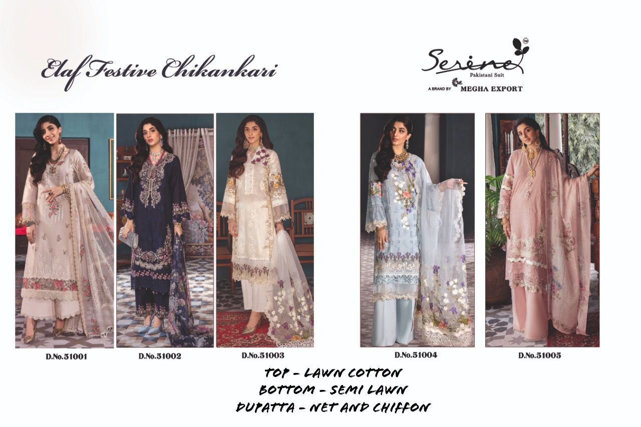 | DETAILS | **Fabric Details:*__*Top : Lawn cotton heavy embroidered *__*Bottom - Semi lawn cotton*__*Dupatta : Net embroidered and Chiffon digital printed*__* 5 piece in set*_ |