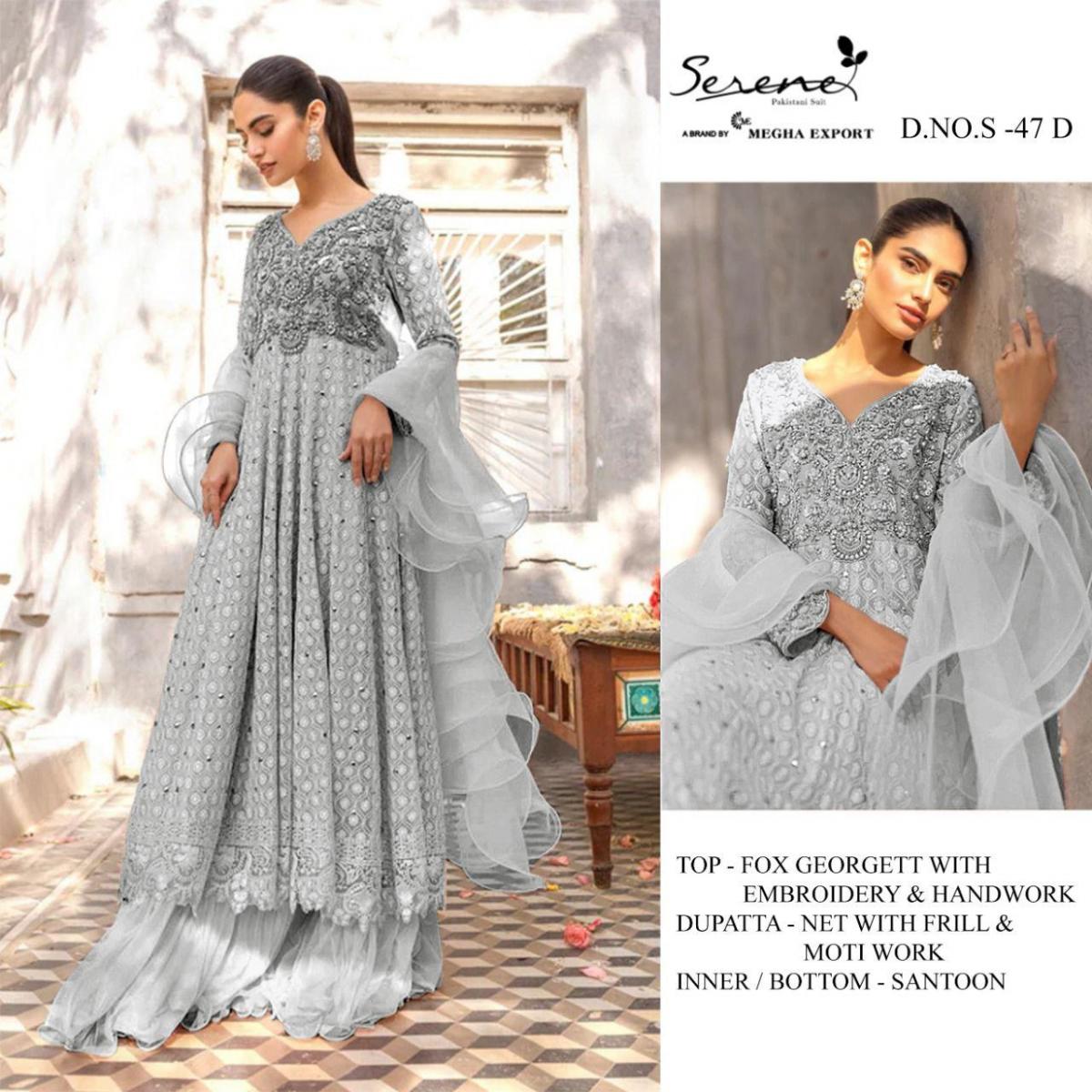 | DETAILS | *_*Fabric Details:*__*Top : Fox georgette heavy embroidered with handwork in neck*__*Bottom + Inner - Heavy Santoon*__*Dupatta : Butterfly net with pearl and four side frill lace*__* 4 piece in set*_ * |