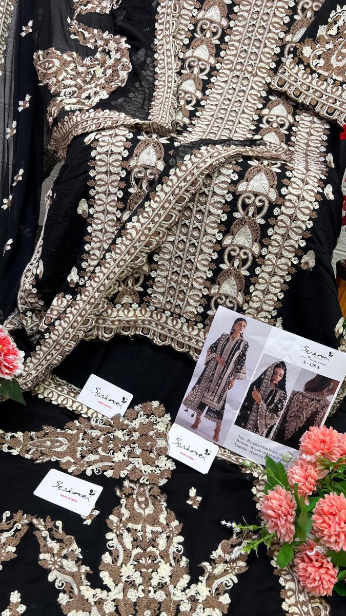 FABRIC DETAILS :- Top:- REYON COTTON HEAVY EMBROIDERED WITH PATCH Dupatta:- NAZNEEN HEAVY EMBROIDERED Bottom:- REYON COTTON WITH EMB LACESERINE S 138 A PAKISTANI SUITS MANUFACTURER