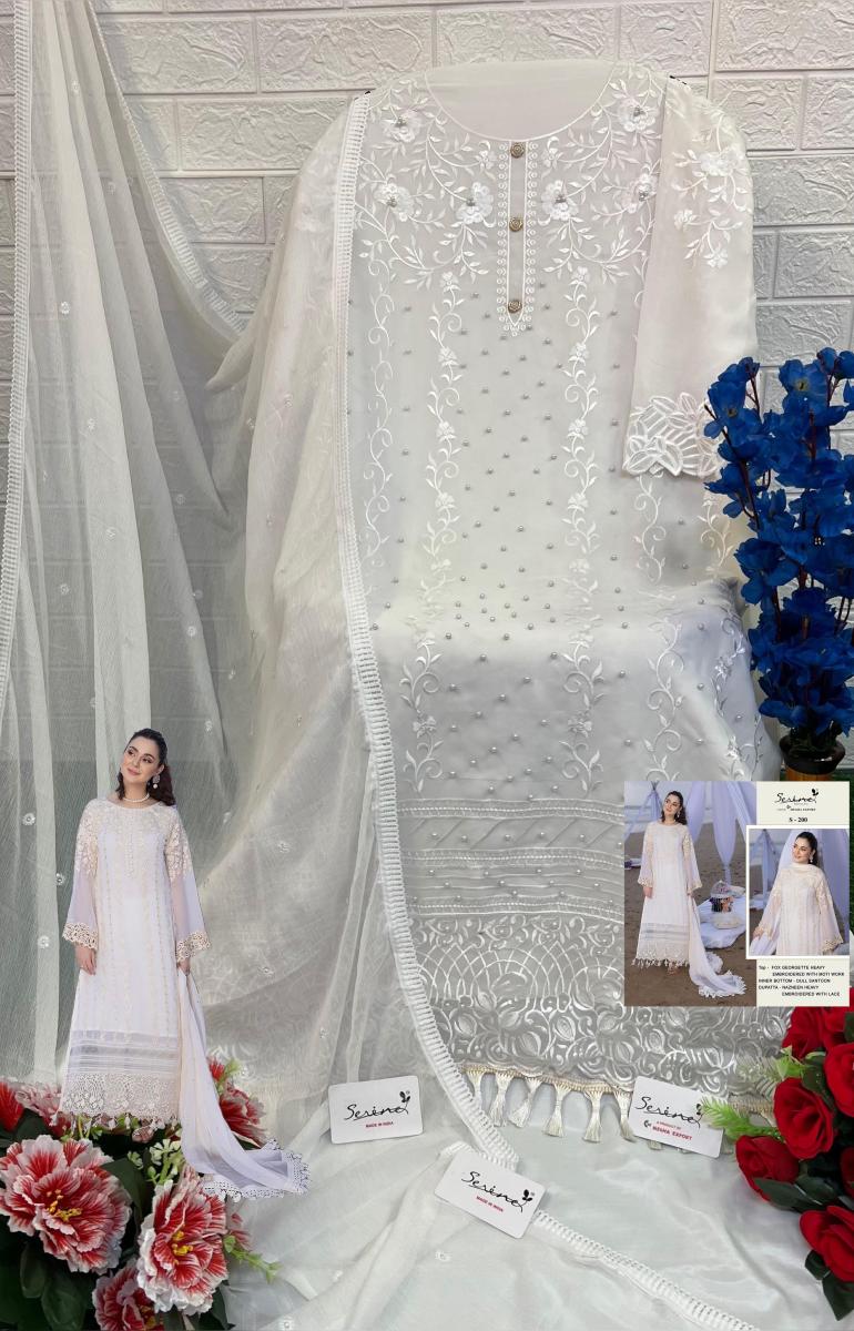 FABRIC DETAILS :- Top:- FOX GEORGETTE EMBROIDERED WITH MOTI WORK Dupatta:- NAZNEEN DUPATTA WITH GPO LACE Bottom:- DULL SANTOON Inner:- DULL SANTOONSERINE S 200 PAKISTANI SUITS WHOLESALE IN INDIA