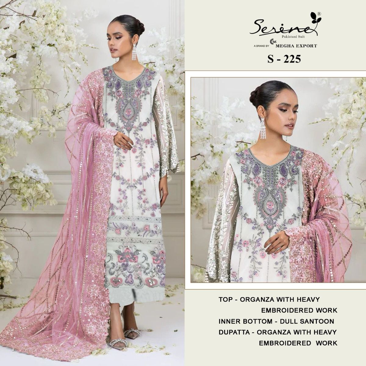 | FABRIC DETAILS | Top:- ORGANZA HEAVY EMBROIDERED Dupatta:- ORGANZA HEAVY EMBROIDERED WITH LACE _*Bottom Innar*DULL SANTUN |