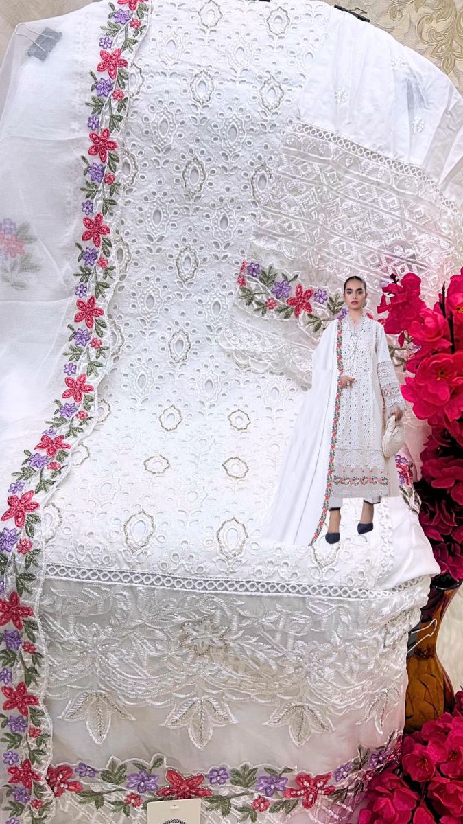 | FABRIC DETAILS | Top :- CAMBRIC COTTON EMBROIDERY SEQUENCE WORK & ADDITIONAL HAND KHATALI HANDWORK lDupatta :-HEAVY NAZMEEN HEAVY EMBROIDERED WORKBottom :- CAMBRIC COTTON |