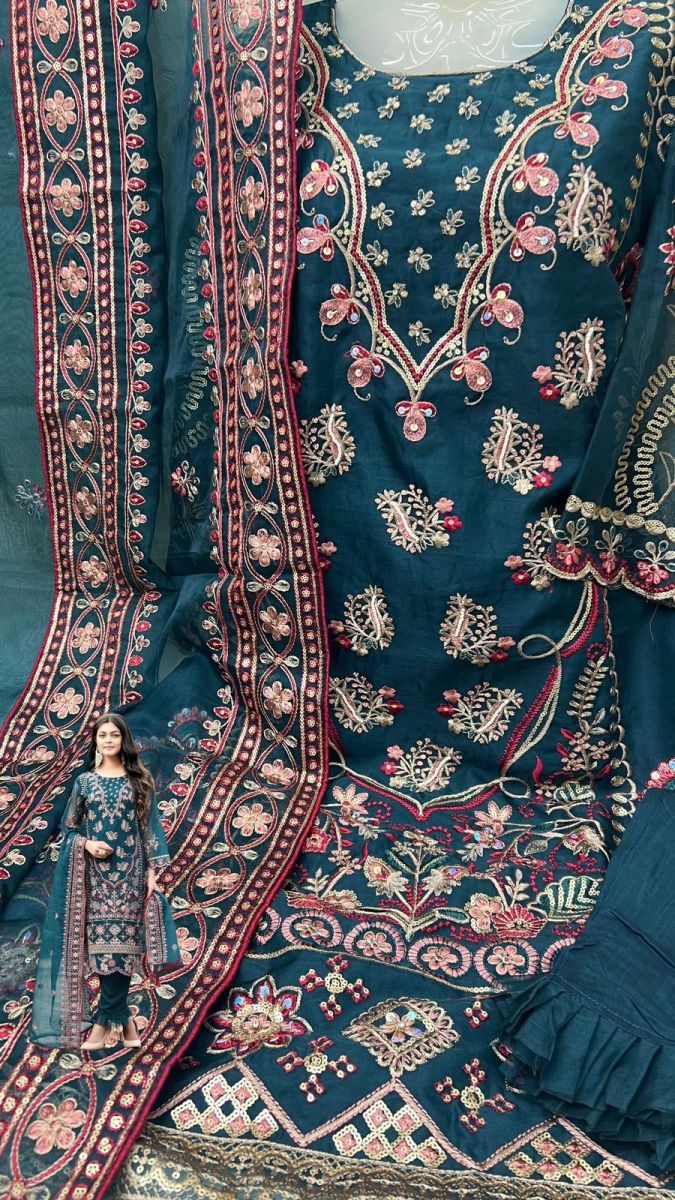 | FABRIC DETAILS | Top :- ORGANZA TISSU EMBROIDERY SEQUENCE WORK & WITH HAND-KHATALI HANDWORKINNER :- SOFT DULL SANTOON WITH TOPDupatta :- ORGANZA TISSU WITH HEAVY EMBROIDERY WORKBottom :- VISCOSE NATURAL SILKAVAILABLE IN XL & XXL |