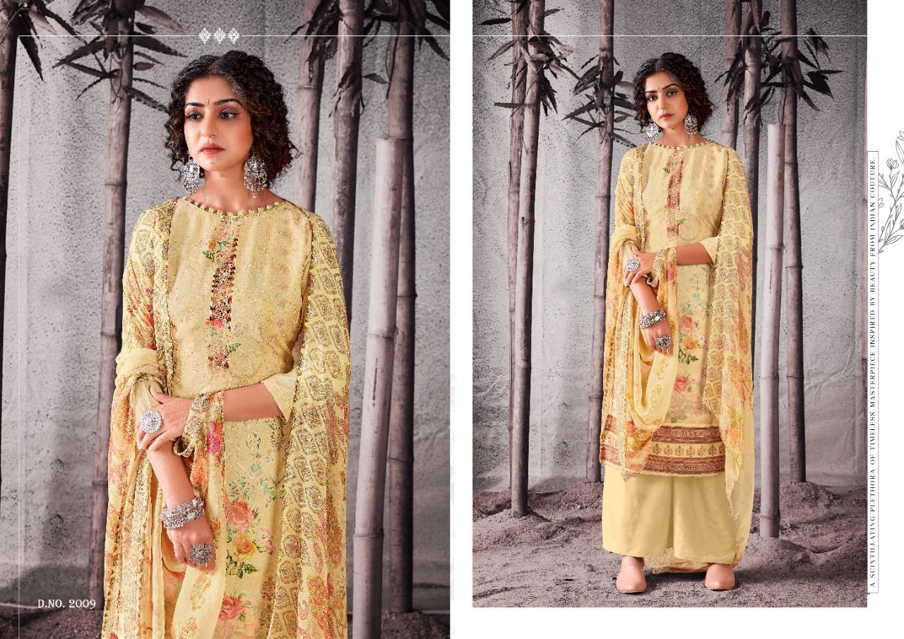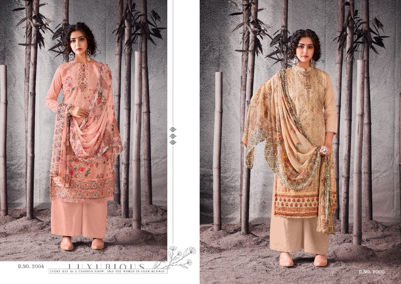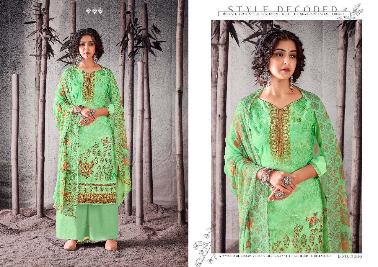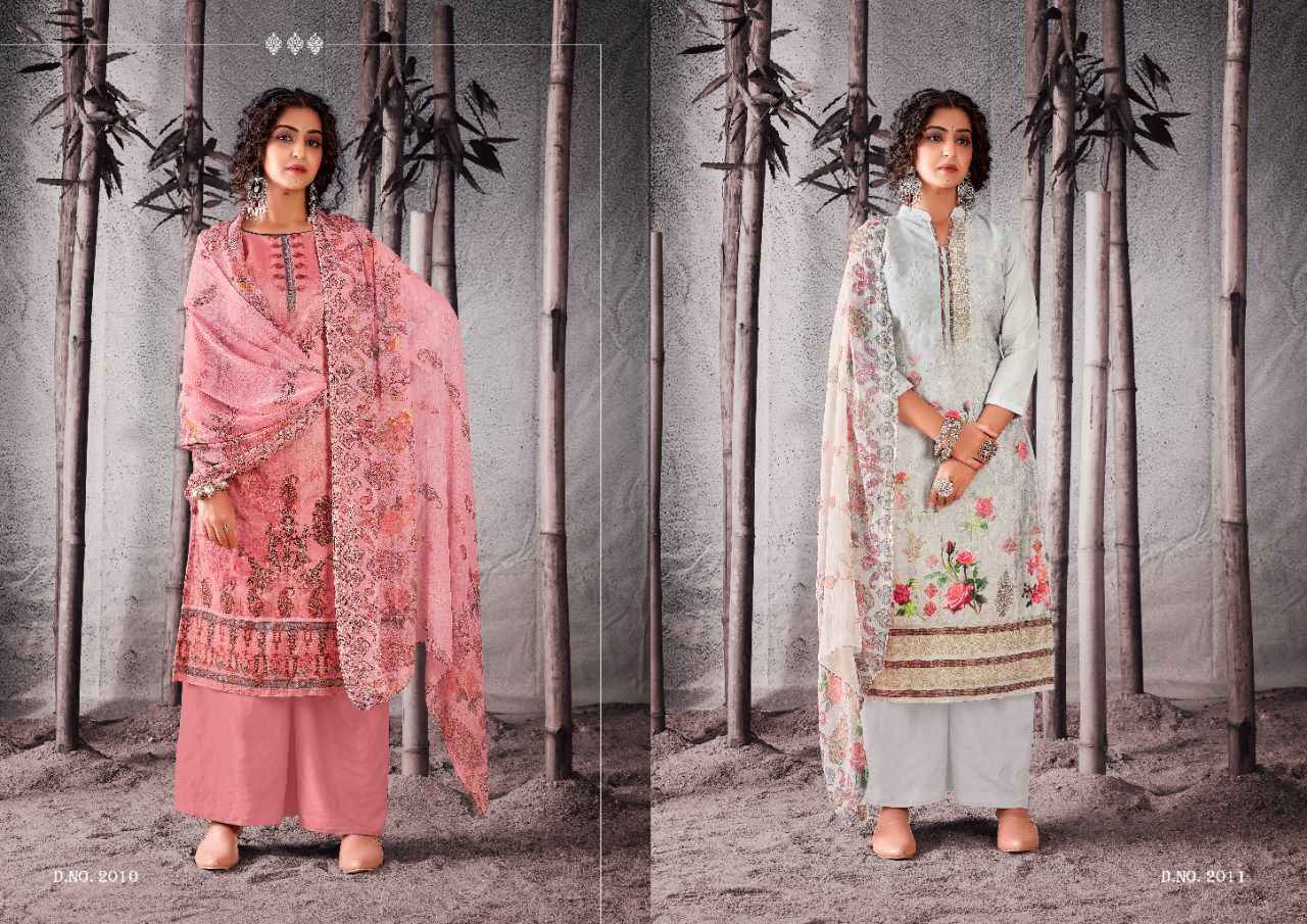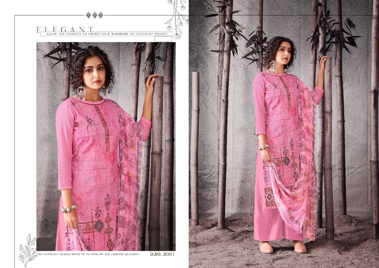| DETAILS | Top: full heavy digital print with full jal work on front, with digital lace full length 47”inch with back plain ! 2.50 mtrs top.Dupatta: Exquisitely Printed nazneen with (2.25 mtrs)Bottom: Heavy indonacia cotton 2.50 mtrsBeautiful 12 design set |