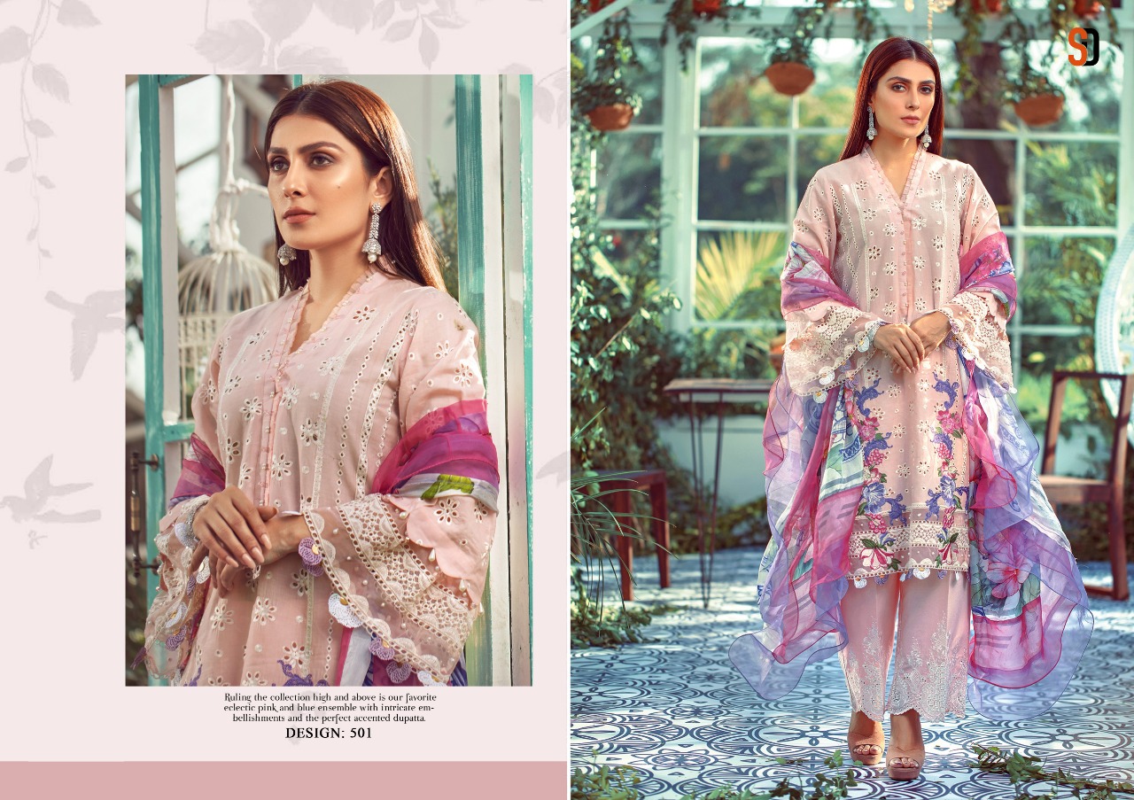 | DETAILS | ELAF Vol-1 ??Fabric details ?? ? Top : Pure cambric cotton with chicken work and heavy embroidery ?Bottom :Semi lawn with embroidery ?Dupatta : Tabby Silk digital print |