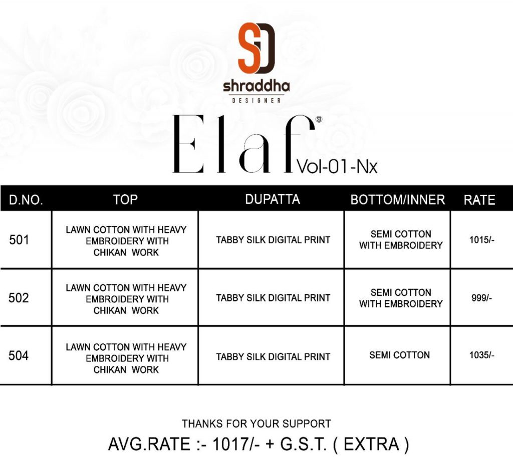 SHRADDHA DESIGNER ELAF VOL 1 NX | WHOLESALE