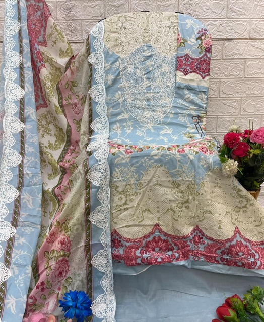 | DETAILS | **FABRIC DETAILS:- Top: Pure Cotton With SELF EMBROIDERY Bottom- Cotton Solid Dupp: Cotton /chiffon *EMBROIDERY Dupatta with cutwork *PRICE-chiffin -650/- |
