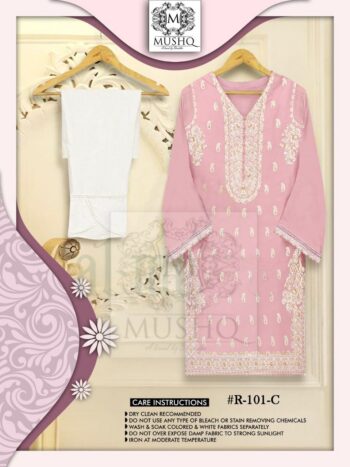 | DETAILS | Top : Pure cambric cotton with chicken work and heavy embroidery Bottom : 2 design Semi lawn/ 2 design printed Dupatta : TABBY SILK DIGITAL PRINTED |