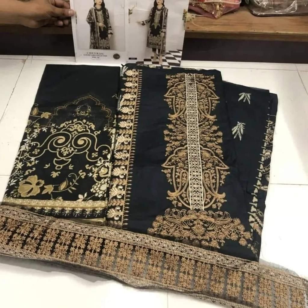 FABRIC DETAILS :- Top pure cotton print with heavy self embroideryBottom semilawnDuppta silver / cottonSHREE FABS 3157 CHEVRON VOL 16 PAKISTANI SUITS