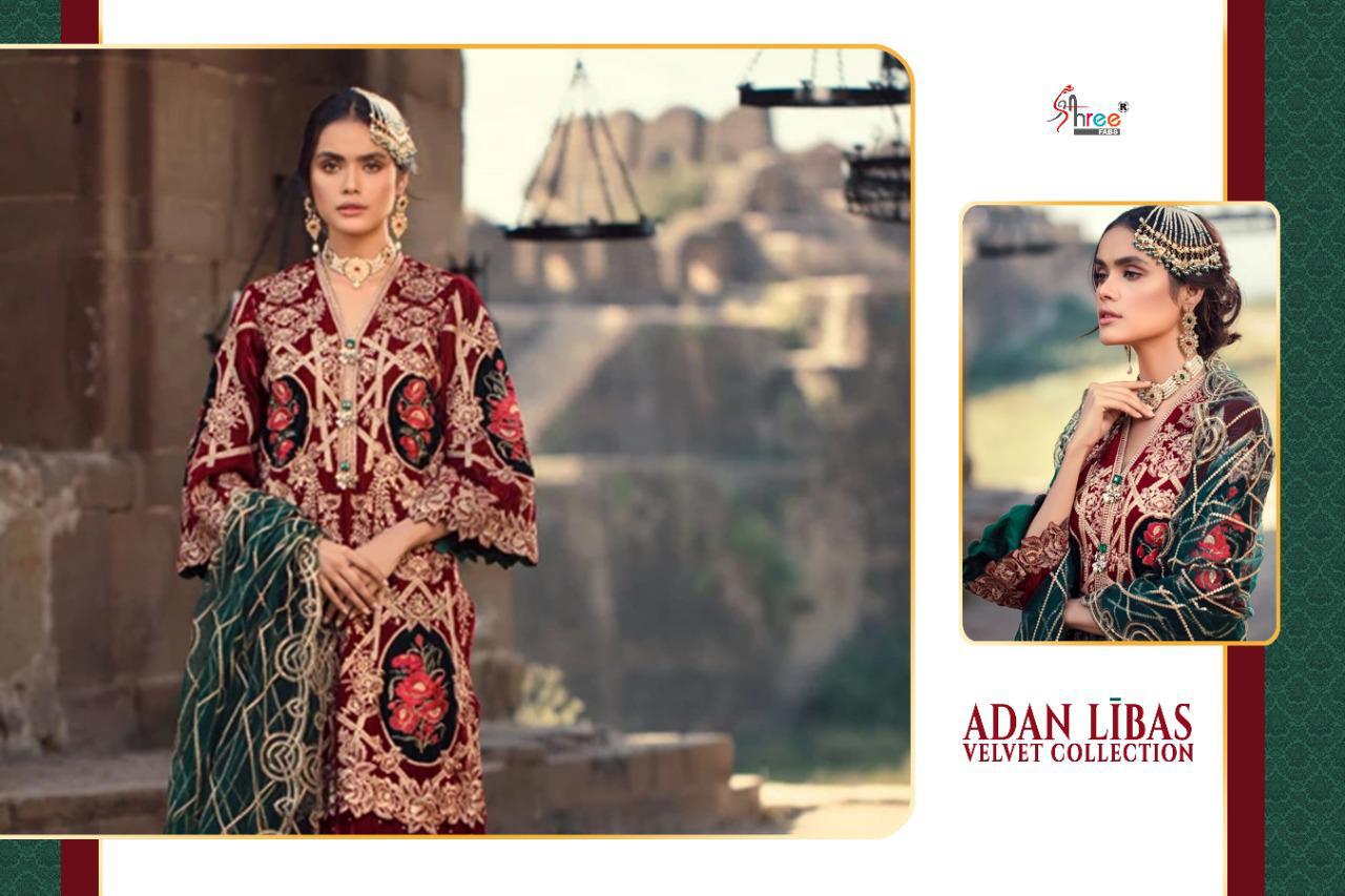 | DETAILS | ADAN LIBAS VELVAT COLLECTION TOP PURE 9000 VELVAT WITH HEAVY EMBRODERY BOTTOM JECORD & SANTOON DUPPTA JECORD & EMBRODERED NET DES 6 RATE 1499 Shree fabs surat |