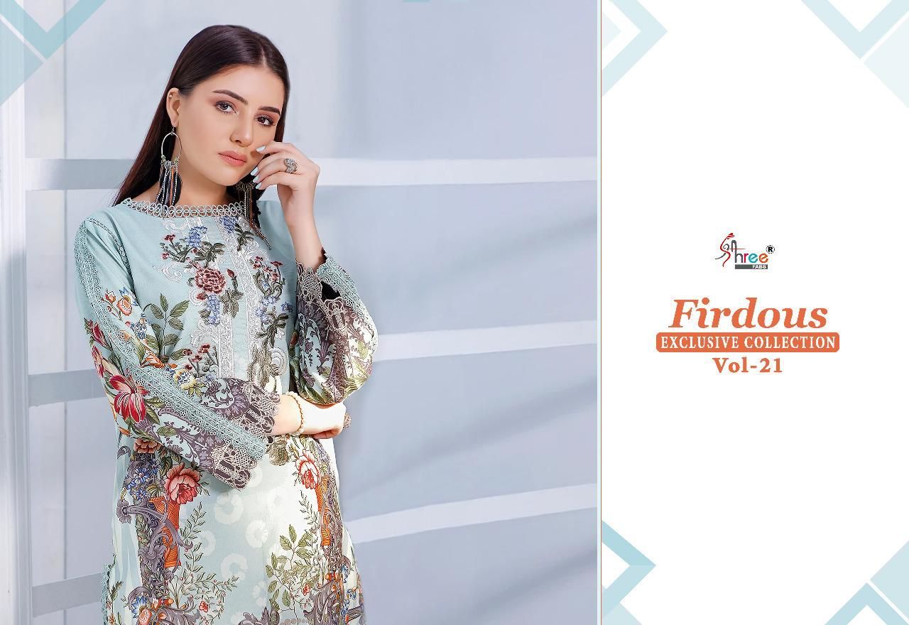 SHREE FABS FIRDOUS VOL 21 COTTON PRINT EMBROIDERY PAKISTANI SUITS WHOLESALE