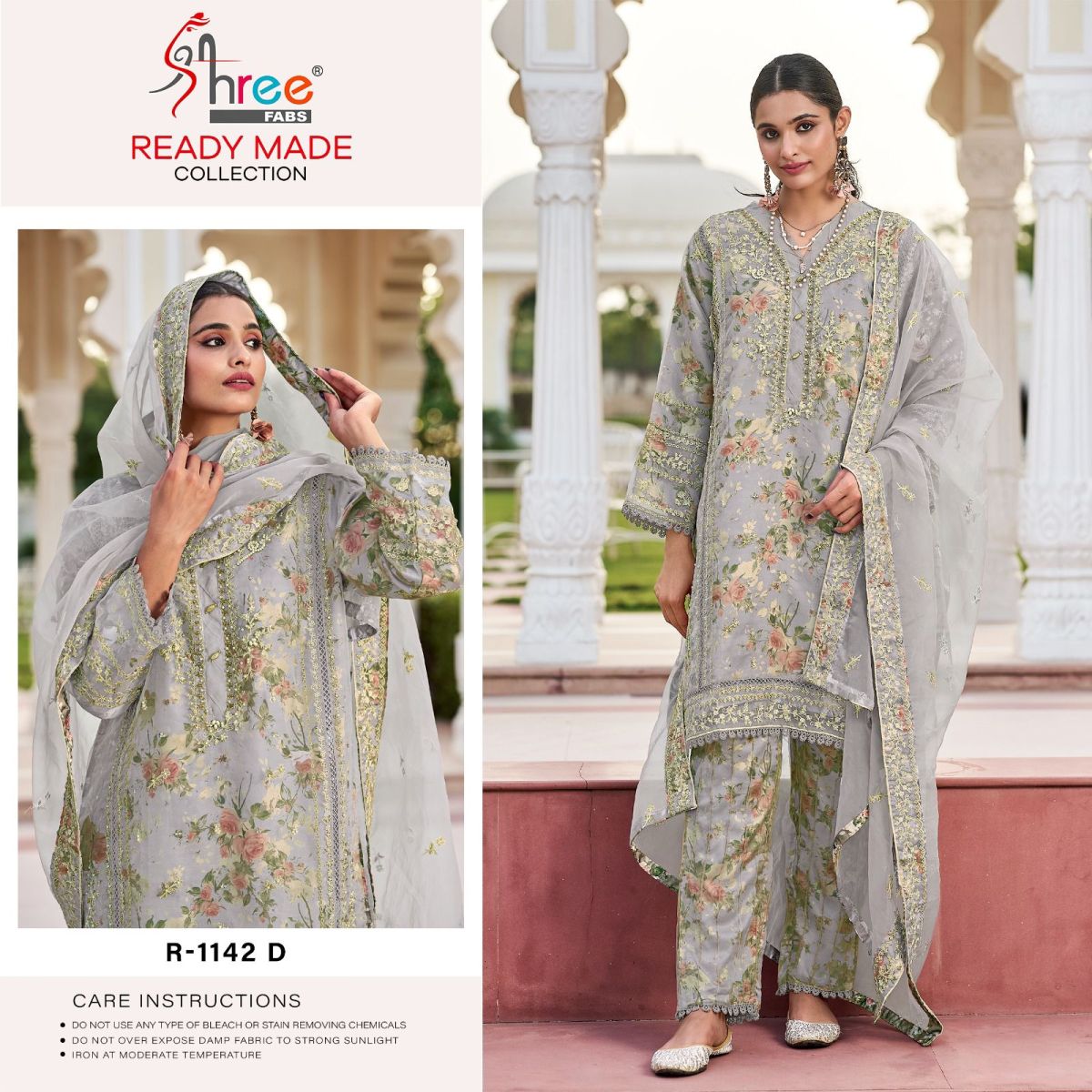 FABRIC DETAILS :- Top organza inner print fabric japanJardoji khatli workBottom organza pleting work with inner japan printDuppta - organzahavvy embrodary with print lessSIZE XL, XXLSHREE FABS R 1142 SERIES READYMADE SALWAR SUITS